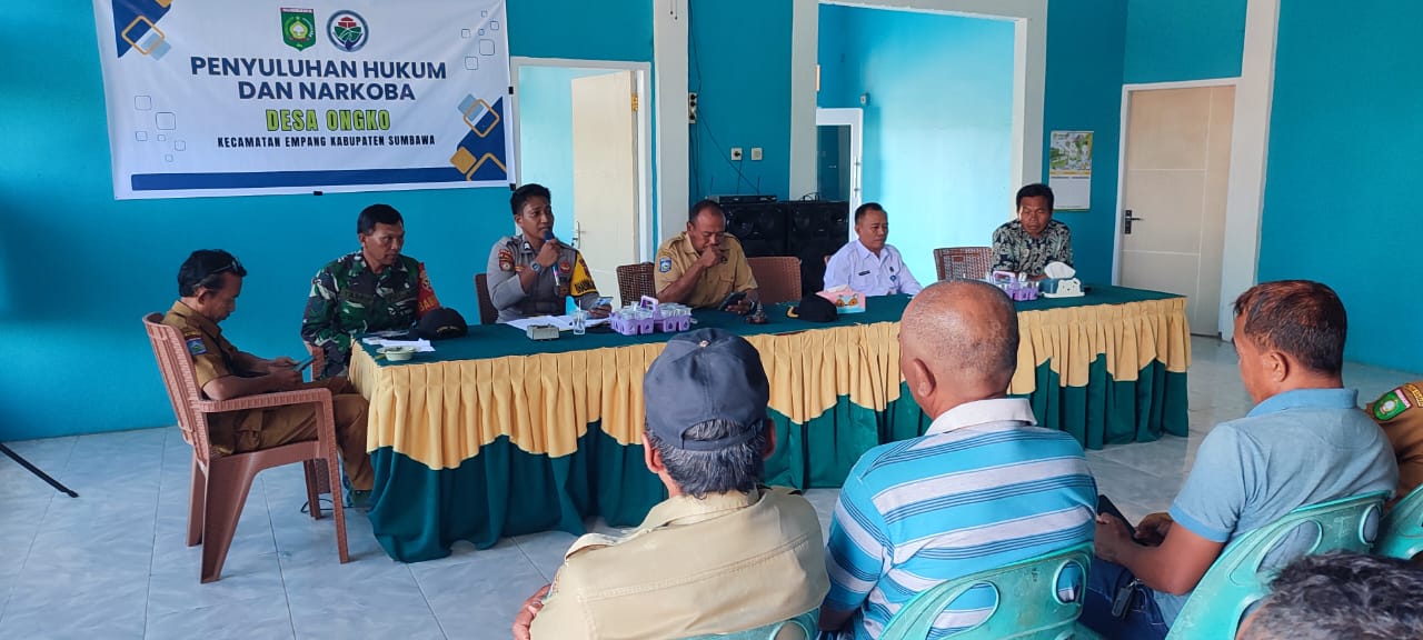 Sumbawa Besar –NTB,  Bhabinkamtibmas Desa Ongko, BRIPTU Dobi Kelana, melaksanakan kegiatan penyuluhan terkait hukum dan bahaya narkoba yang diadakan oleh Tim Pencegahan Narkoba BNN Kabupaten Sumbawa.