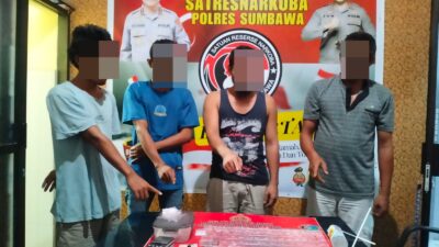 Kegiatan tersebut dipimpin langsung oleh Kapolsek Empang AKP Nakmin, dimana dalam kegiatan itu petugas gabungan turut berhasil mengamankan 4 orang pria terduga pelaku tindak pidana penyalahgunaan narkotika jenis sabu.