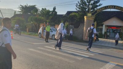 Sumbawa Barat NTB – Untuk memberikan rasa aman terhadap masyarakat khususnya kepada siswa/i yang akan masuk sekolah, anggota Polsek Seteluk Polres Sumbawa Barat melakukan penggelaran anggota di jalan raya ( Strong Point) depan SMPN 1 Seteluk, Selasa (07/01/2025).