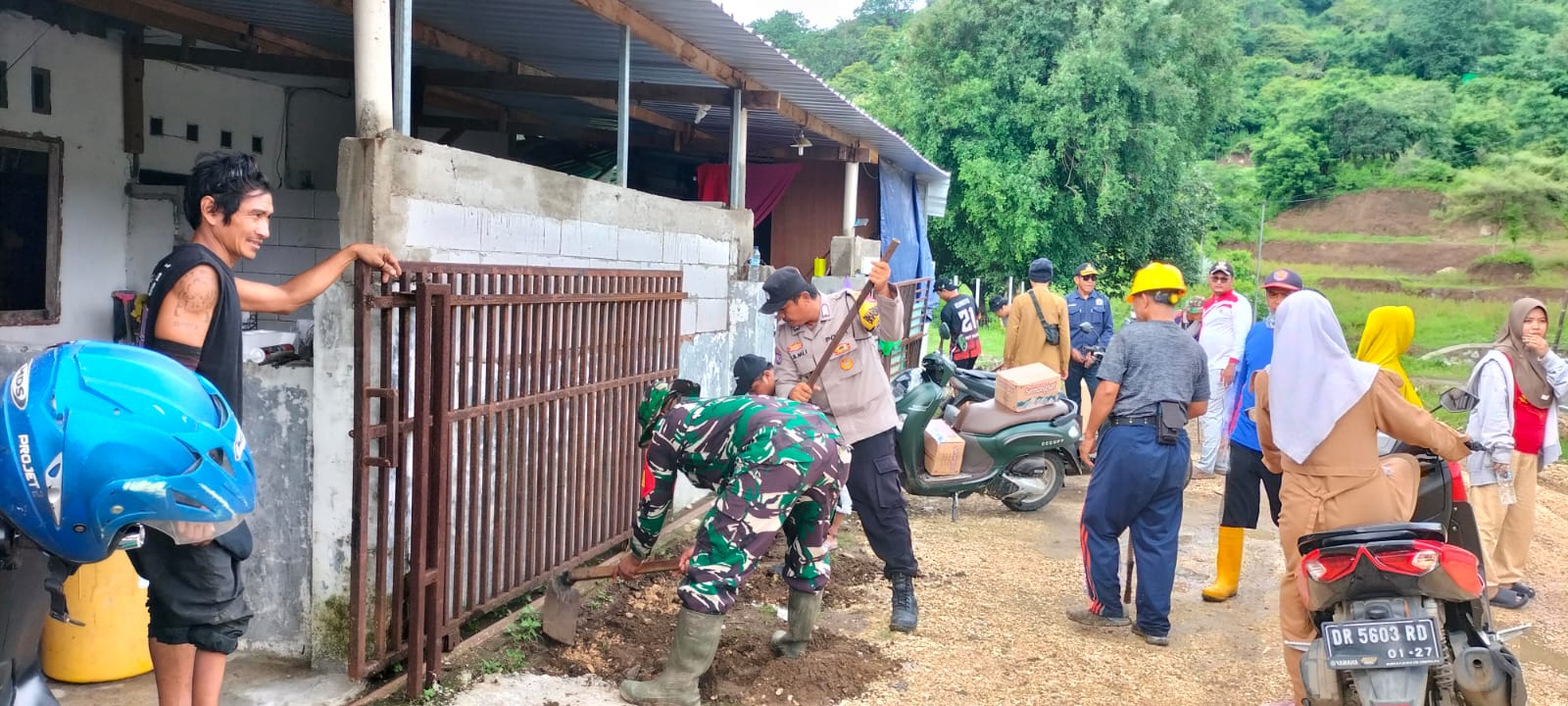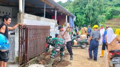 Sumbawa Barat NTB – Akhir Pekan lalu Hujan deras yang mengguyur wilayah Kecamatan Maluk menyebabkan kenaikan debit air yang berdampak genangan air hingga setinggi lutut orang dewasa di pemukiman warga Desa Mantun Kecamatan Maluk, Untuk mengantisipasi genangan air saat hujan kembali mengguyur Bripka Ramli ( Bhabinkamtibmas Desa Mantun ) bersama tiga pilar ( Kepala Desa dan Babinsa ) serta masyarakat melakukan gotong royong mengangkat tanah yang menimbun di drainase jalan Desa Mantun, Senin 6/01/2025.