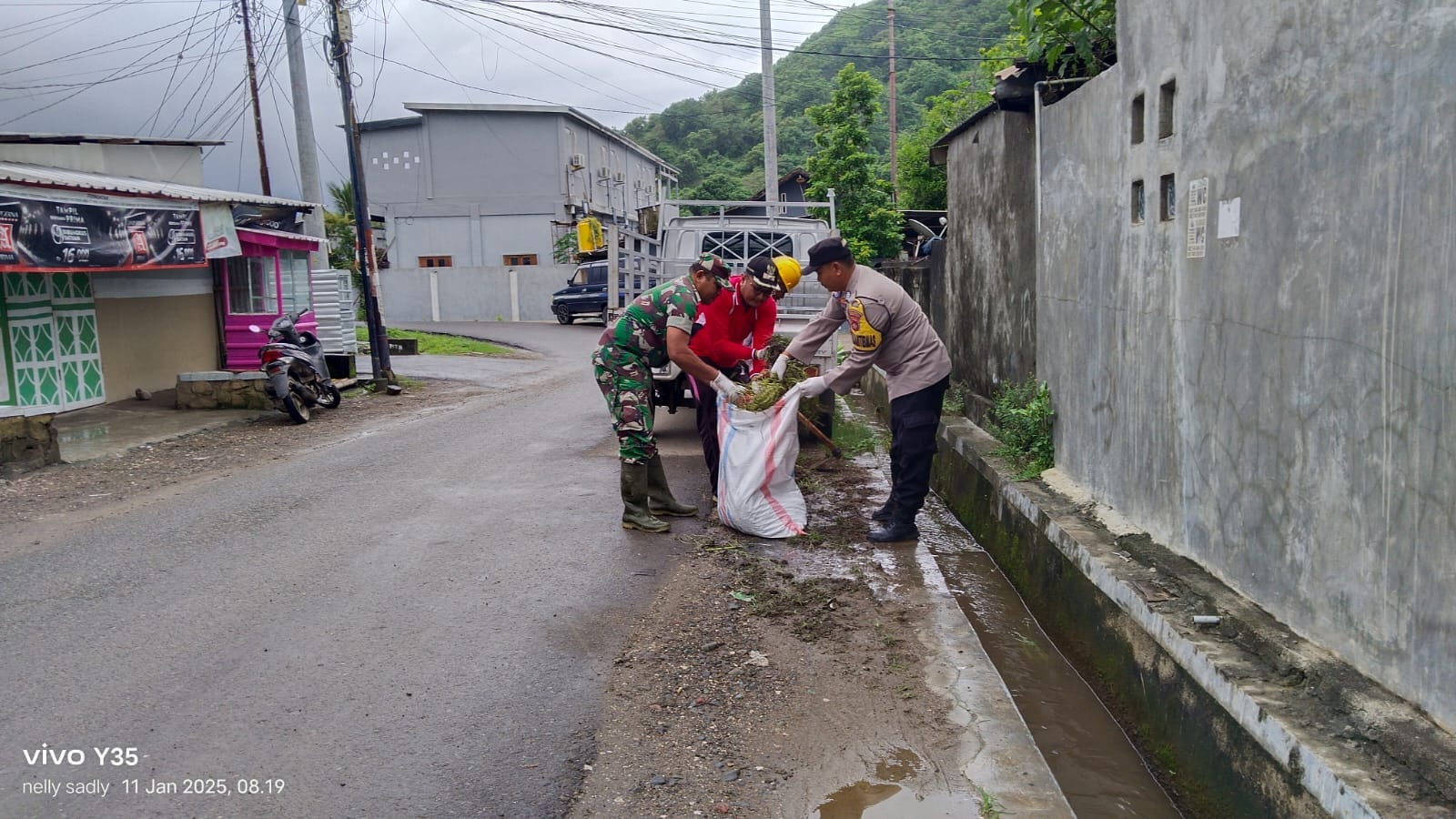 Sumbawa Barat NTB – hujan dengan intensitas tinggi mengakibatkan genangan di beberapa titik lokasi di wilayah Kecamatan Maluk, menyikapi situasi tersebut anggota Polsek Maluk bersama pemerintah Desa dan Camat Maluk melakukan Gotong royong bersama, Sabtu 10/01/2025 .