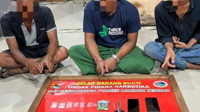 Lombok Tengah, (NTB) – Satuan Reserse Narkoba Polres Lombok Tengah, Polda NTB, mengamankan tiga orang pria diduga terkait penyalahgunaan Narkotika di Kecamatan Praya Timur.