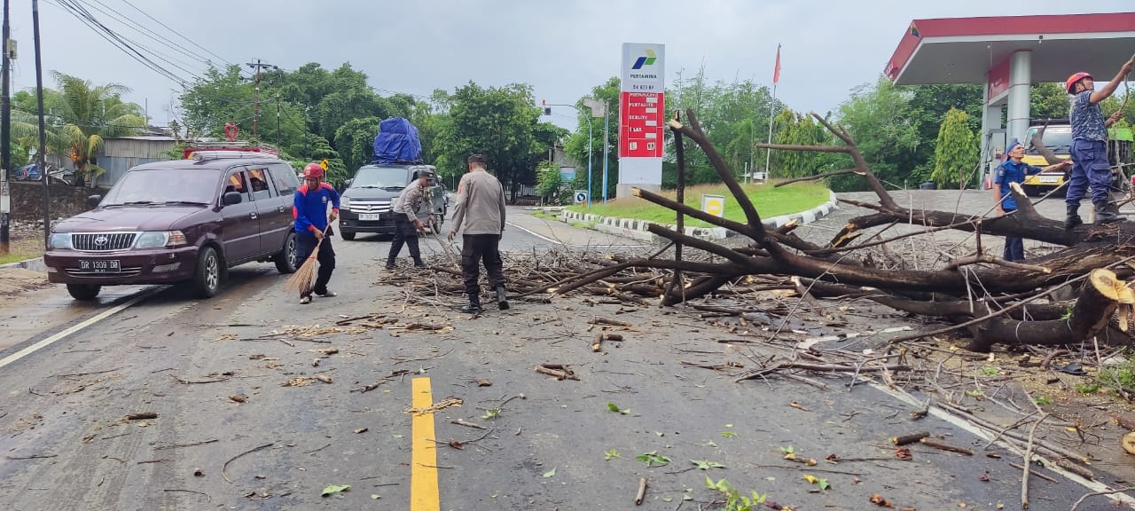 “Dalam peristiwa ini tidak ada korban jiwa maupun materi yang diakibatkan namun sempat menyebabkan terhalangnya lalu lintas jalan dan, 1 jam kemudian pohon berhasil di evakuasi dan lalu lintas dapat berjalan lancar” tutup Kapolsek.