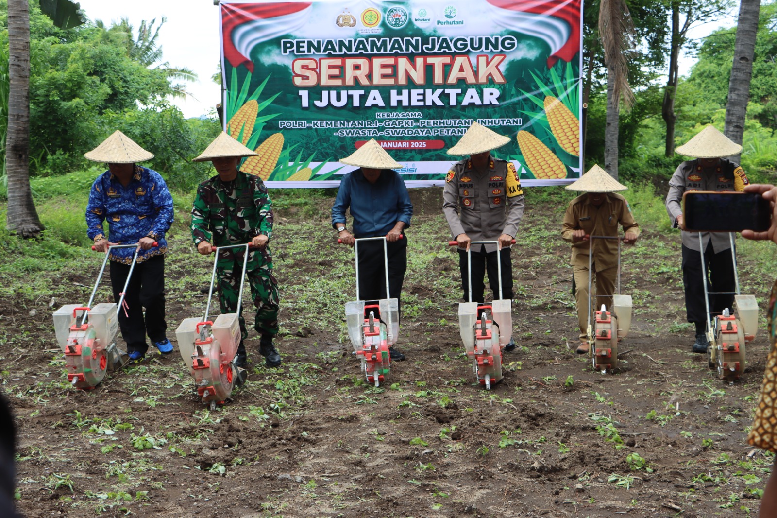 Dalam sambutannya, Kapolres Lombok Utara, AKBP Agus Purwanta, menegaskan pentingnya kegiatan ini sebagai wujud sinergi antara TNI, Polri, dan masyarakat dalam mendukung program ketahanan pangan nasional. “Penanaman jagung serentak ini merupakan langkah nyata untuk meningkatkan kesejahteraan masyarakat sekaligus memperkuat ketahanan pangan di Lombok Utara,” ujarnya.