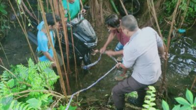 Lombok Utara – Diduga tidak sanggup mengendalikan sepeda motornya seorang pengendara motor terperosok ke parit di Dusun Pelebah Sari, Desa Menggala, Kecamatan Pemenang, Kabupaten Lombok Utara, Jumat (24/1).
