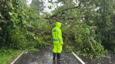 “Penanganan darurat yang telah dilakukan, BPBD bersama personel giat lainnya memotong pohon tumbang tersebut agar jalur bisa kembali normal dan pembersihan puing bekas pohon tumbang