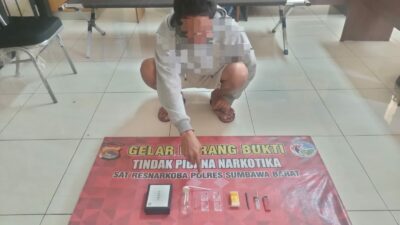 Sumbawa Barat NTB – Pengungkapan kasus Narkoba oleh Tim Opsnal Sat Resnarkoba Polres Sumbawa Barat berhasil meringkus terduga ( AT) alias ( EP) seorang laki – laki 41 tahun, di rumahnya Kelurahan Sampir Kecamatan Taliwang Kabupaten Sumbawa Barat, Sabtu (25/01/2025) pukul 17.05 WITA.
