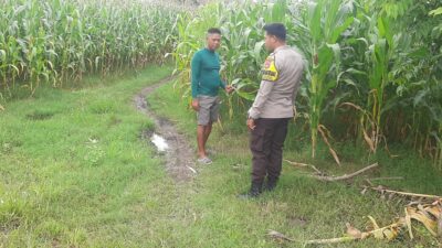 Dalam kegiatan ini, Brigadir Khairul Anwar melakukan pemantauan langsung terhadap lahan pertanian milik Bapak Sukrin yang telah ditanami jagung.