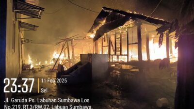 Sumbawa Besar-NTB, Peristiwa kebakaran hebat terjadi di wilayah Kecamatan Labuhan Badas, Kabupaten Sumbawa, pada Selasa malam (12/2) sekitar pukul 23.00 Wita. Kebakaran tersebut melanda pemukiman yang terletak di belakang Pasar Labuhan Sumbawa, Dusun Pasir, Desa Labuhan Kecamatan Labuhan Badas.