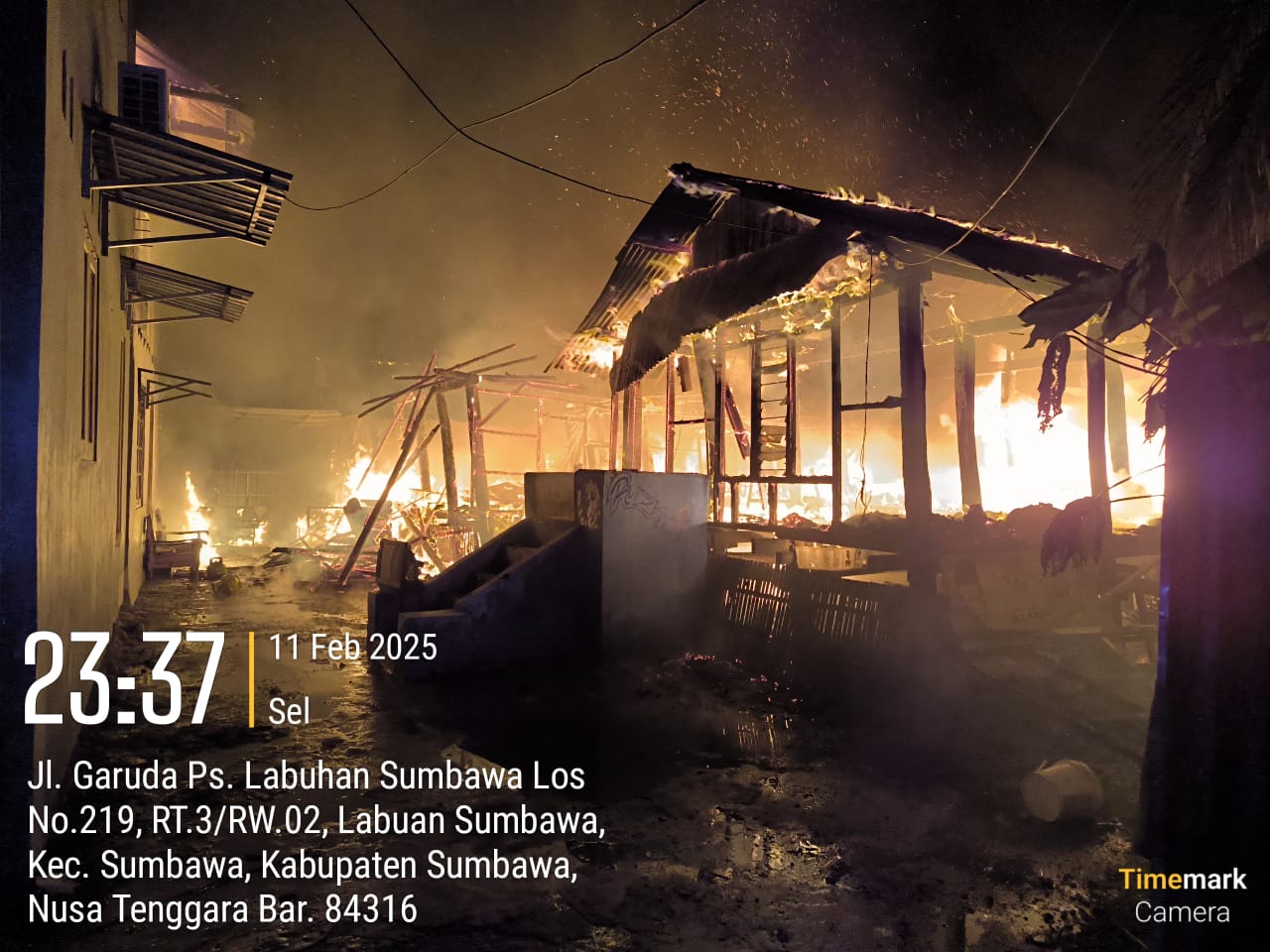 Sumbawa Besar-NTB, Peristiwa kebakaran hebat terjadi di wilayah Kecamatan Labuhan Badas, Kabupaten Sumbawa, pada Selasa malam (12/2) sekitar pukul 23.00 Wita. Kebakaran tersebut melanda pemukiman yang terletak di belakang Pasar Labuhan Sumbawa, Dusun Pasir, Desa Labuhan Kecamatan Labuhan Badas.