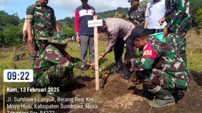 Sumbawa Besar –NTB, Dalam rangka mendukung program penghijauan dan ketahanan pangan, Kapolsek Ropang AKP I Dewa Putu Alit beserta personel Polsek Ropang turut serta dalam kegiatan penanaman pohon yang dilaksanakan di lahan Desa Lenangguar, Kecamatan Lenangguar, Sumbawa, pada Kamis, 13 Februari 2025, pukul 08.30 Wita.