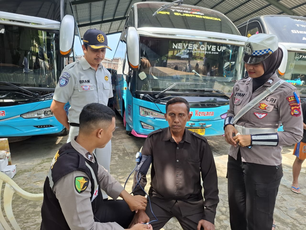 Kota Bima, NTB (13 Februari 2025) – Satuan Lalu Lintas (Satlantas) Polres Bima Kota menggelar kegiatan pengecekan kesehatan gratis bagi para sopir bus Antar Kota Antar Provinsi (AKAP) di salah satu garasi perusahaan otobus di Kota Bima, Kamis (13/2/2025). Kegiatan ini merupakan bagian dari upaya kepolisian dalam meningkatkan keselamatan berkendara, khususnya bagi para sopir angkutan umum jarak jauh.