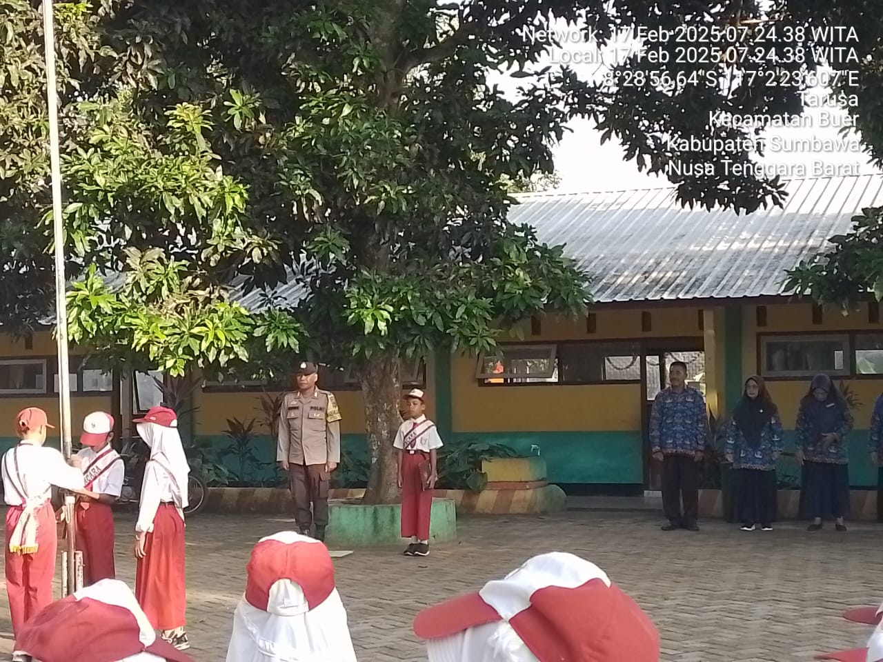 Sumbawa Besar–NTB, Setiap hari Senin pagi, personel Polsek jajaran Polres Sumbawa melaksanakan kegiatan rutin yang dikenal dengan nama “Police Goes to School”, Senin 17 Februari 2025.