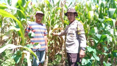 Bhabinkamtibmas Manggelewa Pantau Lahan Pertanian Program Ketahanan Pangan Nasional
