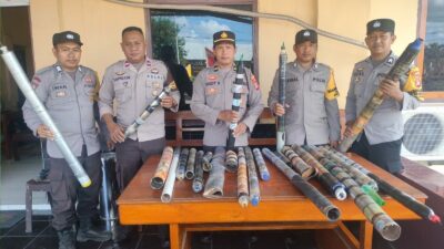 Sumbawa Besar-NTB, Polres Sumbawa, berhasil mengamankan puluhan petasan berbahan kaleng dan spiritus yang ditemukan dari tangan sejumlah anak-anak yang sedang jalan-jalan subuh di sepanjang jalan Desa Plampang, Senin (03/03/25).