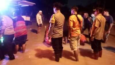 Jakarta. Polres Bogor dan Polda Jawa Barat turun langsung membantu penanganan banjir di Kecamatan Gunungputri, Kabupaten Bogor. Personel Polres Bogor berjibaku naik perahu karet membantu proses evakuasi warga terdampak banjir.