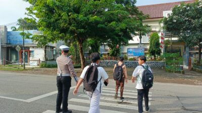 Kota Bima, NTB (7 Maret 2025) – Personel Satuan Lalu Lintas (Sat Lantas) Polres Bima Kota melaksanakan tugas pengaturan lalu lintas pagi hari (Gatur Pagi) dengan membantu anak sekolah menyeberang jalan, Jumat (7/3/25). Kegiatan ini merupakan bagian dari upaya kepolisian dalam memberikan perlindungan, pengayoman, dan pelayanan kepada masyarakat, serta menjaga ketertiban dan keamanan lalu lintas.