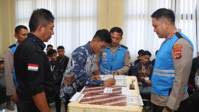 Sumbawa Besar –NTB, Polres Sumbawa menggelar kegiatan Penandatanganan Pakta Integritas dan Pengambilan Sumpah untuk Panitia, Peserta, dan Orang Tua/Wali Penerimaan Terpadu Anggota Polri Tahun Anggaran 2025. Kegiatan tersebut berlangsung di Gedung Rupatama Polres Sumbawa dan dilakukan secara virtual melalui Zoom Meeting, Jumat (07/03/25) pagi.