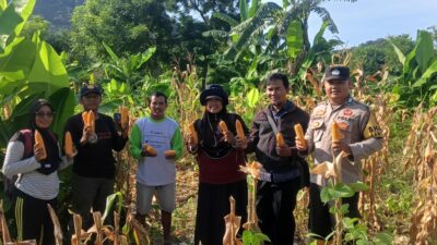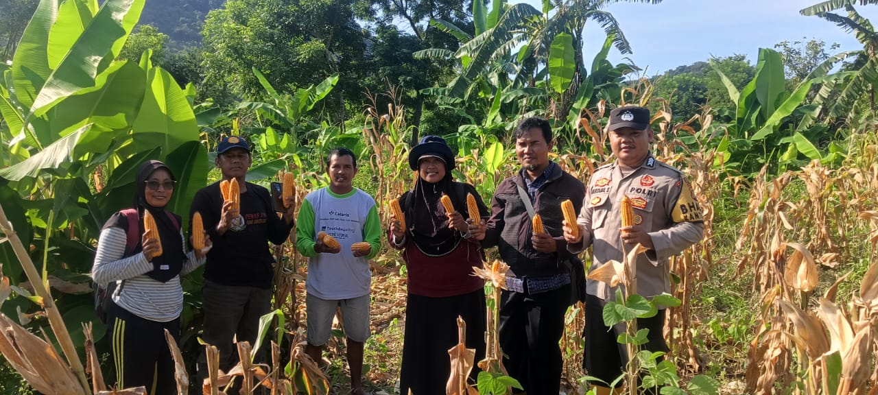 Dukung Ketahanan Pangan, Bhabinkamtibmas Desa Sekongkang Bawah Berikan Pendampingan Panen Jagung di Salah Satu Lahan Milik Warga