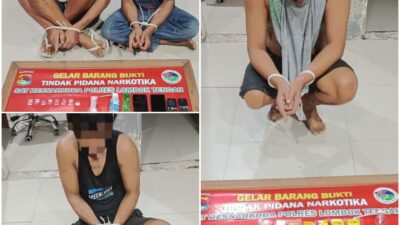 Lombok Tengah, (NTB) – Tim Opsnal Sat Resnarkoba dan Sat Reskrim berhasil mengamankan empat orang terduga pelaku penyalahgunaan Narkoba di Desa Bilelando Kecamatan Praya Timur.