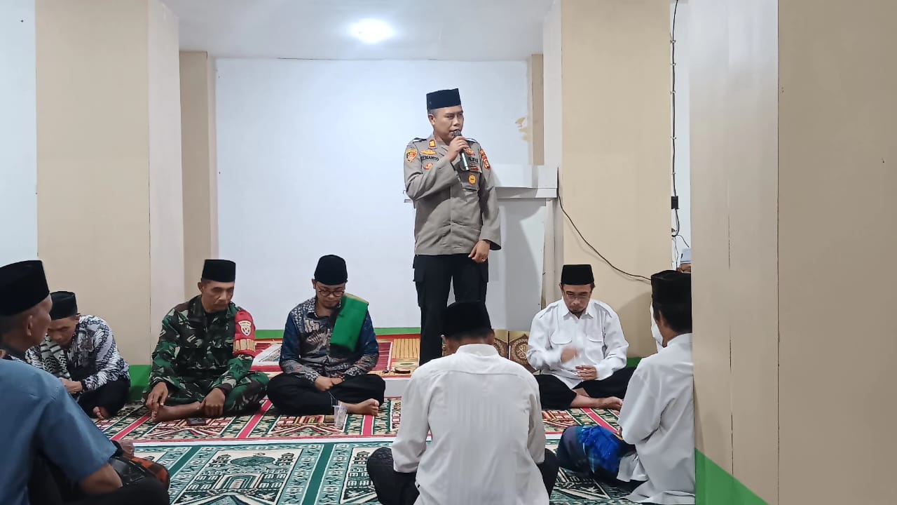 Kapolsek menyampaikan bahwa mari kita tetap berbuat baik, apalagi di bulan suci Ramadhan, bulan yang penuh berkah dan ampunan, maka dari itu kami berharap tetap saling menjaga keluarga kita lingkungan kita seperti penggunaan knalpot bronh, membunyikan petasan pada saat jemaah melaksnakan sholat tarawih, sehingga bisa menimbulkan potensi gangguan maka dari itu marilah kita jaga harkamtibmas guna terciptanya kondusifitas wilayah sehingga di bulan suci Ramadhan ini kita dapat melaksanakannya dengan khusuk aman dan nyaman tutup Kapolsek