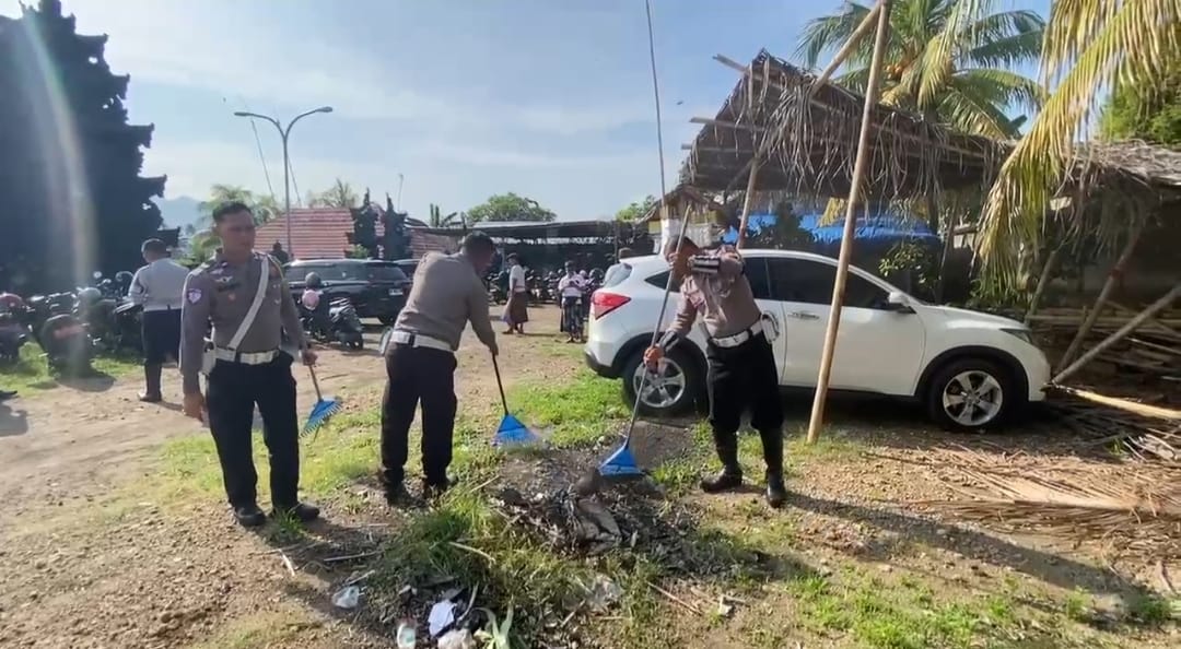 Bakti Riligi Sat Lantas Polres Lombok Utara di Pura
