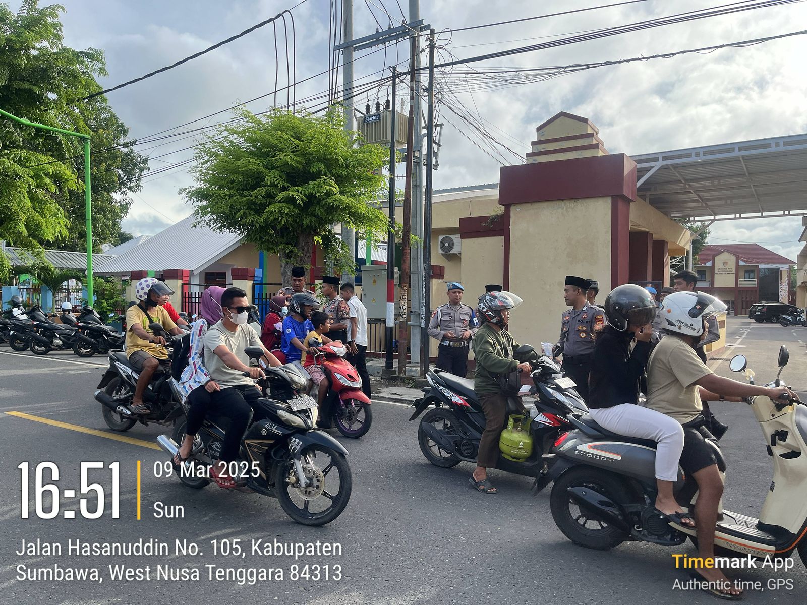 Sumbawa Besar-NTB, Personel Sat Samapta Polres Sumbawa melaksanakan kegiatan pembagian takjil gratis kepada pengendara dan masyarakat yang melintas di depan Mapolres Sumbawa pada Minggu (09/03/25). Kegiatan ini dipimpin langsung oleh Kasat Samapta, IPTU Tahir Lantu.