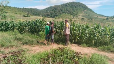 Dalam upaya mendukung Program Ketahanan Pangan Nasional menuju Indonesia Emas, Bhabinkamtibmas (BKTM) Desa Taropo, AIPDA I Putu Adi Kamajaya, melakukan pemantauan perkembangan tanaman jagung di lahan pekarangan milik warga binaannya, Sdr. Nurdin. Kegiatan ini berlangsung pada Senin (10/3/2025) di Dusun Serahe, Desa Taropo, Kecamatan Kilo, Kabupaten Dompu.