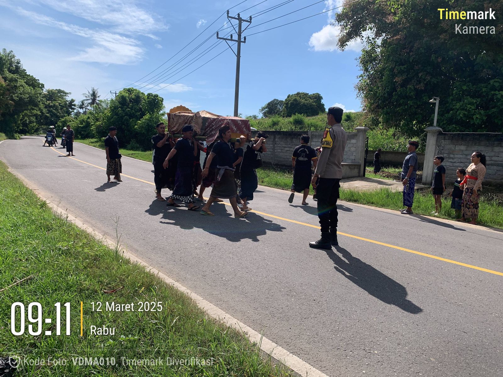 Selain melayat, Briptu Astu Mudita juga turut serta dalam pengaturan arus lalu lintas dan pengawalan jenazah menuju lokasi kremasi setempat sebagai bagian dari tugas dan tanggung jawabnya sebagai Bhabinkamtibmas.