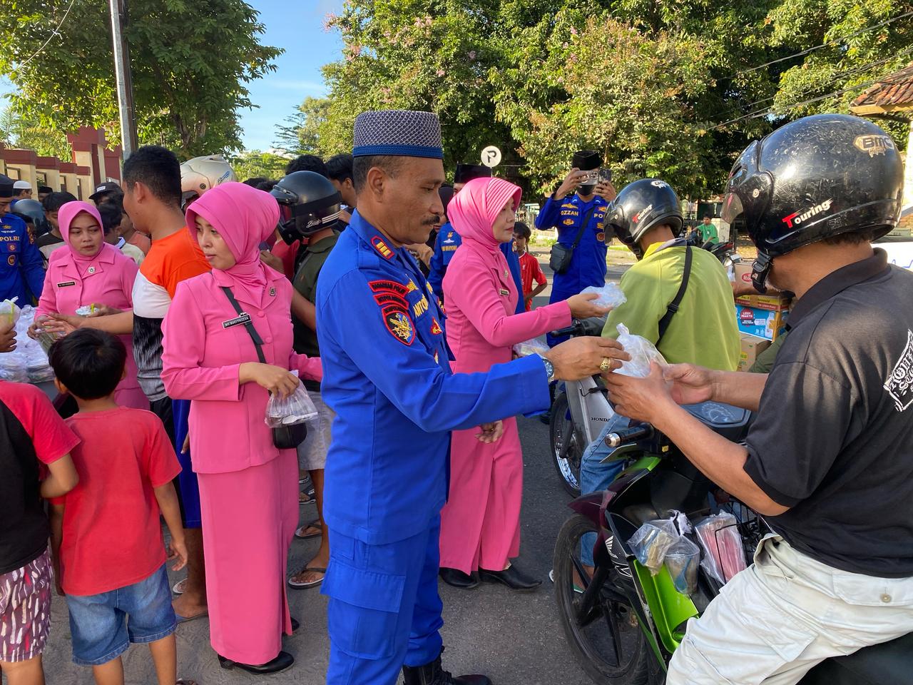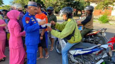 Sumbawa Besar-NTB, Dalam rangka memanfaatkan momen bulan suci Ramadhan, Sat Polairud Polres Sumbawa menggelar kegiatan pembagian takjil gratis kepada masyarakat yang melintas di depan Mapolres Sumbawa. Kegiatan sosial ini dipimpin langsung oleh Kepala Satuan Polairud (Kasat Polairud), AKP Antonius Dopo, bersama personel Sat Polairud serta Bhayangkari, Rabu (12/03/25).