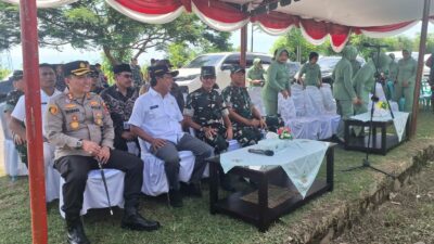 Sumbawa Barat, NTB – Kapolres Sumbawa Barat, AKBP Yasmara Harahap, S.I.K., menghadiri peninjauan lokasi pembangunan Batalyon Teritorial dalam rangka Kunjungan Kerja Pangdam IX/Udayana, Mayjen TNI Muhammad Zamroni, S.I.P., M.Si., di Desa Senayan, Kecamatan Poto Tano, Kabupaten Sumbawa Barat, Kamis (13/03/2025).