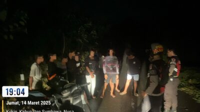 Sumbawa Besar–NTB, Personel Unit Patroli Samapta Polres Sumbawa berhasil menggagalkan aksi balap liar yang dilakukan oleh sejumlah remaja di Jembatan Limung, Kecamatan Moyo Hilir, Kabupaten Sumbawa,NTB, pada Jumat malam, 14 Maret 2025, sekitar pukul 19:04 WITA. Aksi balap liar yang berlangsung di lokasi tersebut sempat mengganggu arus lalu lintas dan menimbulkan keresahan di kalangan masyarakat sekitar.
