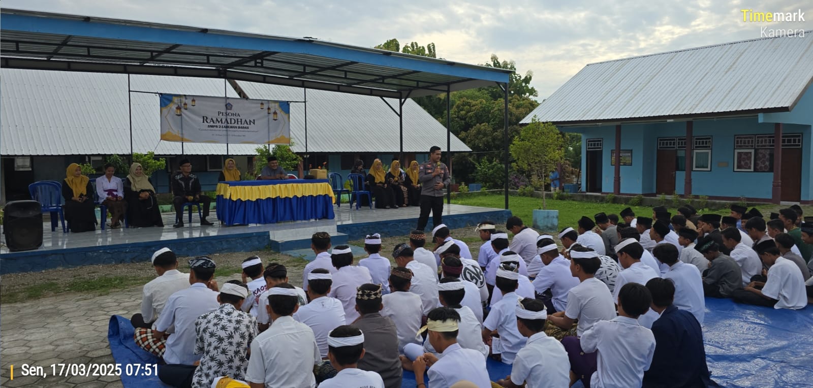 Sumbawa Besar–NTB, Personel Polsek Labuhan Badas jajaran Polres Sumbawa melaksanakan kegiatan sambang sekolah dan penyuluhan kepada para siswa di SMPN 2 Labuhan Badas, Desa Labuhan Badas, Kecamatan Labuhan Badas, Kabupaten Sumbawa, Senin (17/03/25).