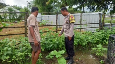 Sumbawa Barat, NTB – Bhabinkamtibmas Desa Dasan Anyar, Aipda Sugianto, melakukan pengecekan ketahanan pangan pekarangan bergizi milik Bapak Jaya, seorang pengelola tanaman sayur mayur di RT 08 Dusun Baru Pasingga, Desa Dasan Anyar, Kecamatan Jereweh, Kabupaten Sumbawa Barat. Kegiatan ini berlangsung pada hari Minggu, 23 Maret 2025, pukul 10.30 WITA.