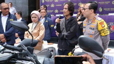 “Kami dari Ditreskrimum Polda Metro Jaya akan mengembalikan barang bukti yang berhasil disita oleh tim penyidik kepada para pemilik yang sah. Oleh karena itu dalam kesempatan yang baik ini kami serahkan secara simbolis kunci motornya kepada para pemilik,” Dirreskrimum, Senin (24/3/2025).