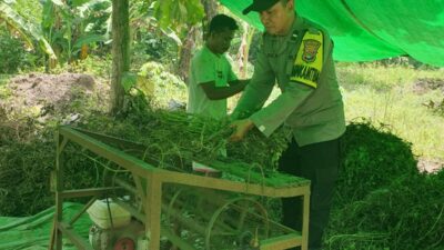 Kota Bima, NTB (25 Maret 2025) – Dalam upaya mendukung program Ketahanan Pangan Nasional sesuai dengan Asta Cita Presiden RI, Bhabinkamtibmas Kelurahan Jatibaru Timur, Polsek Asakota, Polres Bima Kota, Aipda I Ketut Widia Arka melaksanakan kegiatan sambang sekaligus membantu warga binaannya yang sedang panen kacang tanah. Kegiatan ini berlangsung pada Sabtu, 22 Maret 2025, pukul 10.00 WITA, bertempat di So Nggaro Lembo, Lingkungan Rasabou, Kelurahan Jatibaru Timur.