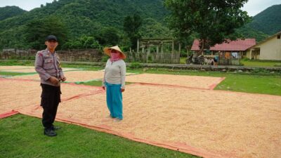 Bhabinkamtibmas (BKTM) Desa Dorebara, Bripka Hendripto, melaksanakan pemantauan terhadap warga yang sedang menjemur jagung hasil panen di Dusun Tente, Desa Dorebara, Kecamatan Dompu, Kabupaten Dompu, pada Selasa, 25 Maret 2025, pukul 10.30 Wita hingga selesai.