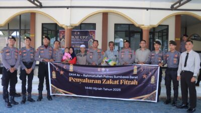 Sumbawa Barat, NTB – Dalam rangka menyempurnakan bulan suci Ramadhan dan menunaikan rukun islam ke 4 , Polres Sumbawa Barat melalui Unit Pengumpul Zakat (UPZ) Masjid Ar-Rahmatullah kembali menyalurkan zakat fitrah kepada masyarakat yang berhak menerima. Kegiatan penyaluran zakat ini berlangsung pada hari Jumat, 28 Maret 2025, bertempat di Kelurahan Telaga Bertong, Kecamatan Taliwang, Kabupaten Sumbawa Barat.