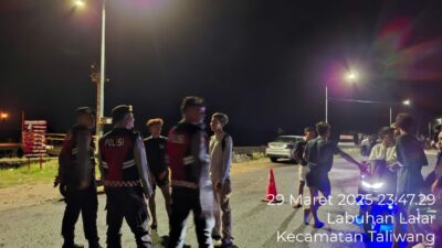 Sumbawa Barat, NTB – Menjelang Hari Raya Idul Fitri, Unit Patroli Sat Samapta Polres Sumbawa Barat intensifkan patroli di berbagai titik wilayah, salah satunya di Dermaga Labuhan Lalar, Kecamatan Taliwang, Kabupaten Sumbawa Barat. Pada hari Sabtu, 29 Maret 2025 pukul 23.00 WITA, petugas patroli mendatangi sekelompok remaja yang sedang berkumpul di lokasi tersebut.