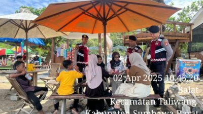 Sumbawa Barat, NTB – Dalam mengantisipasi gangguan keamanan dan ketertiban masyarakat (Kamtibmas), anggota Sat Samapta Polres Sumbawa Barat melaksanakan patroli di tempat wisata Pantai Balad yang sering dikunjungi oleh wisatawan lokal/daerah, pada Rabu (02/04/2025).