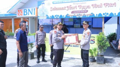 Di tengah padatnya arus balik, Kapolres Sumbawa Barat, AKBP Zulkarnain, S.I.K., mengunjungi Pos Pengamanan yang berlokasi di wilayah Kecamatan Maluk dan Pos Terpadu di wilayah Kawasan Pelabuhan Penyeberangan Poto Tano, pada Jumat, 4 April 2025.