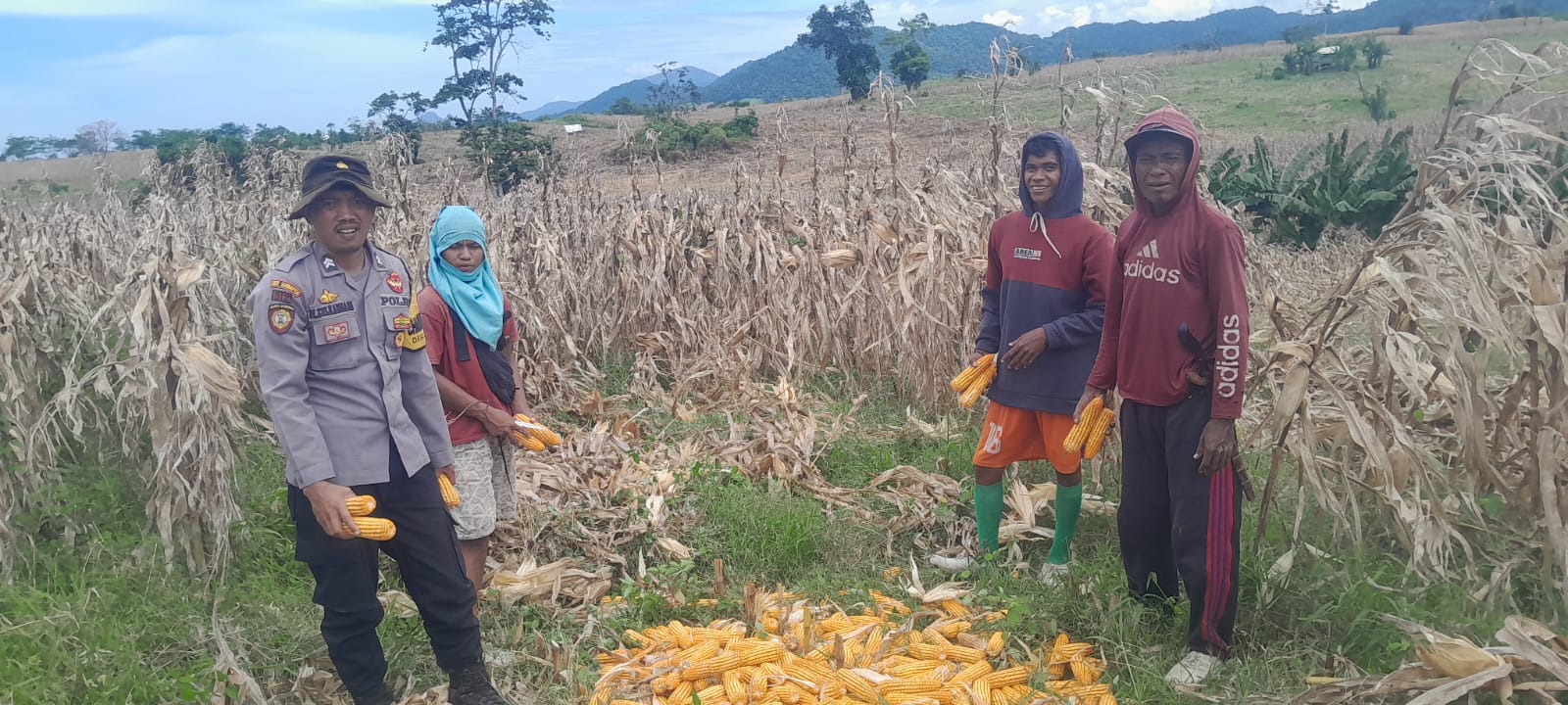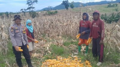 Sumbawa Barat, NTB – Pada hari Senin, 7 April 2025, pukul 10.00 WITA, Bhabinkamtibmas Desa Talonang Baru, Kecamatan Sekongkang, Kabupaten Sumbawa Barat, melaksanakan kegiatan pendampingan panen jagung yang dilakukan oleh enam kelompok tani di desa setempat. Kegiatan ini bertujuan untuk mendukung ketahanan pangan di wilayah tersebut.