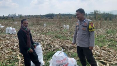 Dengan penuh keramahan, Brigpol Topan menyapa para petani yang tengah memanen hasil kerja keras mereka. Di sela obrolan ringan, ia menyampaikan pentingnya memanfaatkan setiap jengkal tanah untuk ketahanan pangan—sebuah langkah nyata menuju Indonesia Emas 2045.