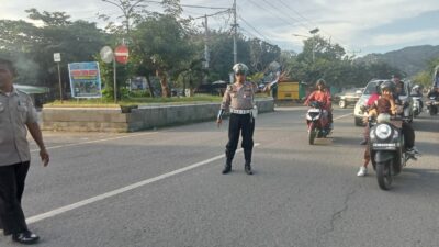 Kota Bima, NTB (12 April 2025) – Untuk menciptakan keamanan, keselamatan, dan kelancaran lalu lintas di pagi hari, personel Polsek Rasanae Barat melaksanakan kegiatan Rawan Pagi/Strong Point pada Sabtu (12/4/2025) sekitar pukul 07.00 WITA, bertempat di depan MTsN 1 Kota Bima.