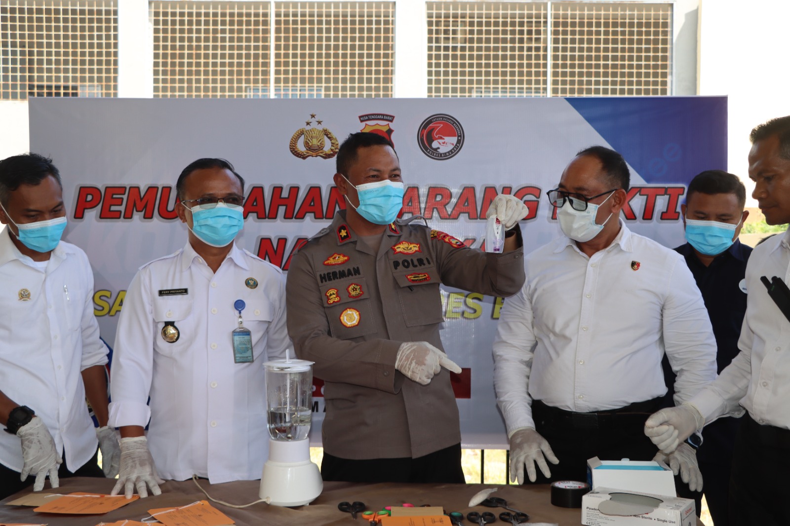 Pemusnahan barang bukti dipimpin langsung oleh Wakapolres Bima Kota, Kompol Herman, S.H., mewakili Kapolres Bima Kota, AKBP Didik Putra Kuncoro, S.I.K., M.Si. Hadir pula dalam kegiatan tersebut para pejabat dari Forkopimda, Kepala BNNK Bima, perwakilan Balai POM Bima, para pengacara, serta sejumlah pejabat instansi terkait lainnya.