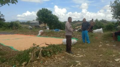 Sebagai bentuk dukungan terhadap Program Ketahanan Pangan Nasional Menuju Indonesia Emas 2045, Bhabinkamtibmas Kelurahan Simpasai, Aipda Haerudin, melaksanakan kegiatan pemantauan panen jagung di Lingkungan Larema, Kelurahan Simpasai, Kecamatan Woja, pada Selasa (15/4/2025) pukul 12.00 Wita.
