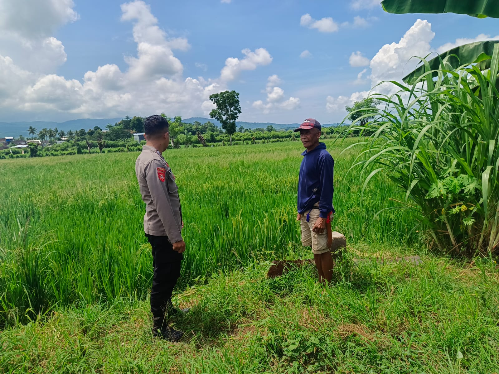 Dalam kegiatan yang dilaksanakan baru-baru ini, Briptu Agus tidak hanya sekadar mengecek kondisi tanaman padi, tetapi juga aktif berinteraksi dan memberikan motivasi kepada para petani.