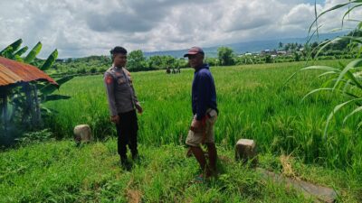 Sumbawa, NTB – Briptu Agus Suryawirawan, Bhabinkamtibmas Desa Bantulanteh, Kecamatan Tarano, menunjukkan kedekatannya dengan masyarakat binaannya melalui kegiatan sambang ke sawah-sawah milik petani setempat, Sabtu (19/04/25).