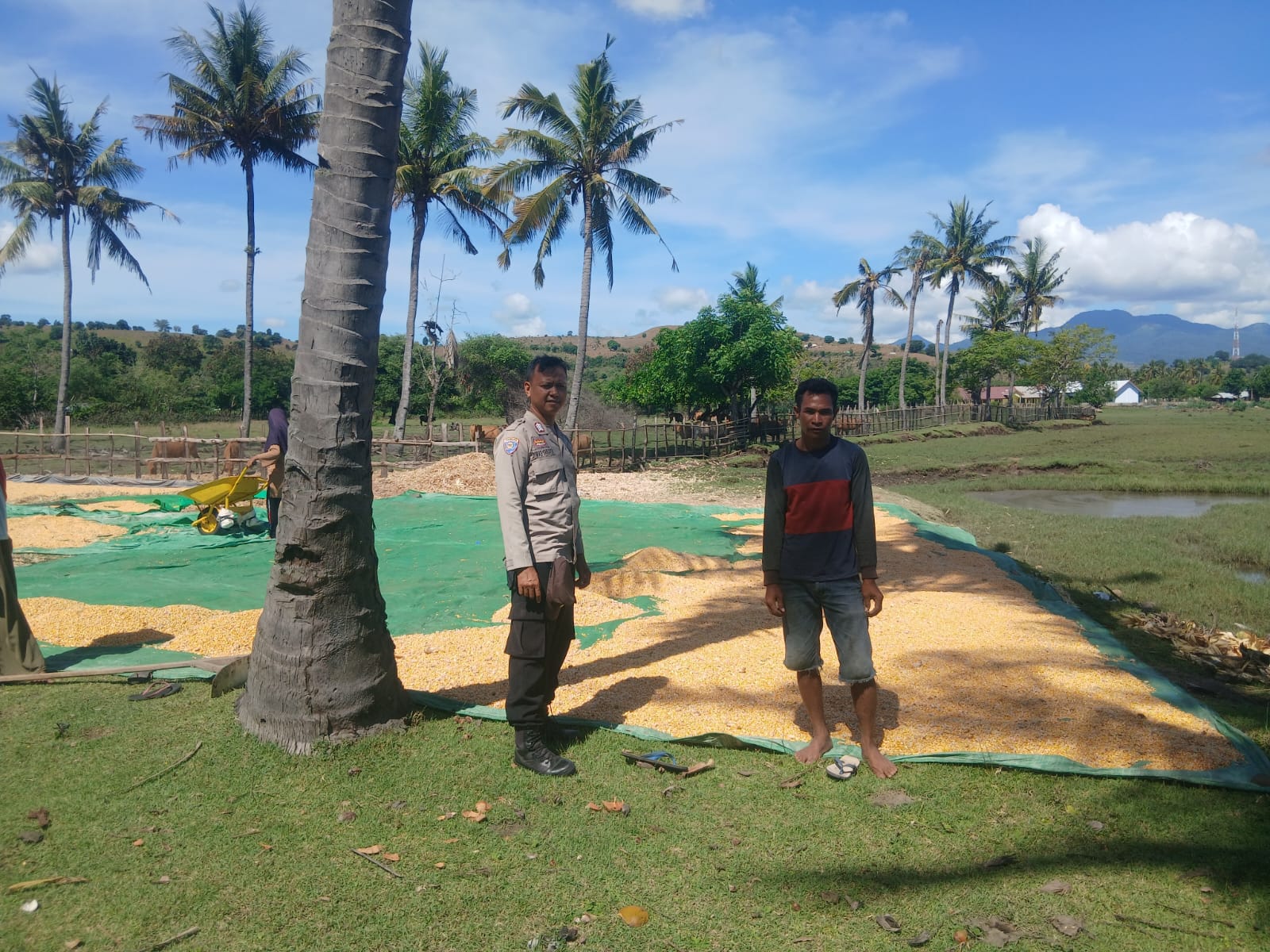 Dalam rangka mendukung Program Ketahanan Pangan Nasional menuju Indonesia Emas, Bhabinkamtibmas Desa Mbuju Polsek Kilo, BRIPKA Dimas Sanjaya Putra, melaksanakan pemantauan kegiatan panen jagung milik warga binaannya, Bapak Muhammad, Sabtu (19/4/2025).