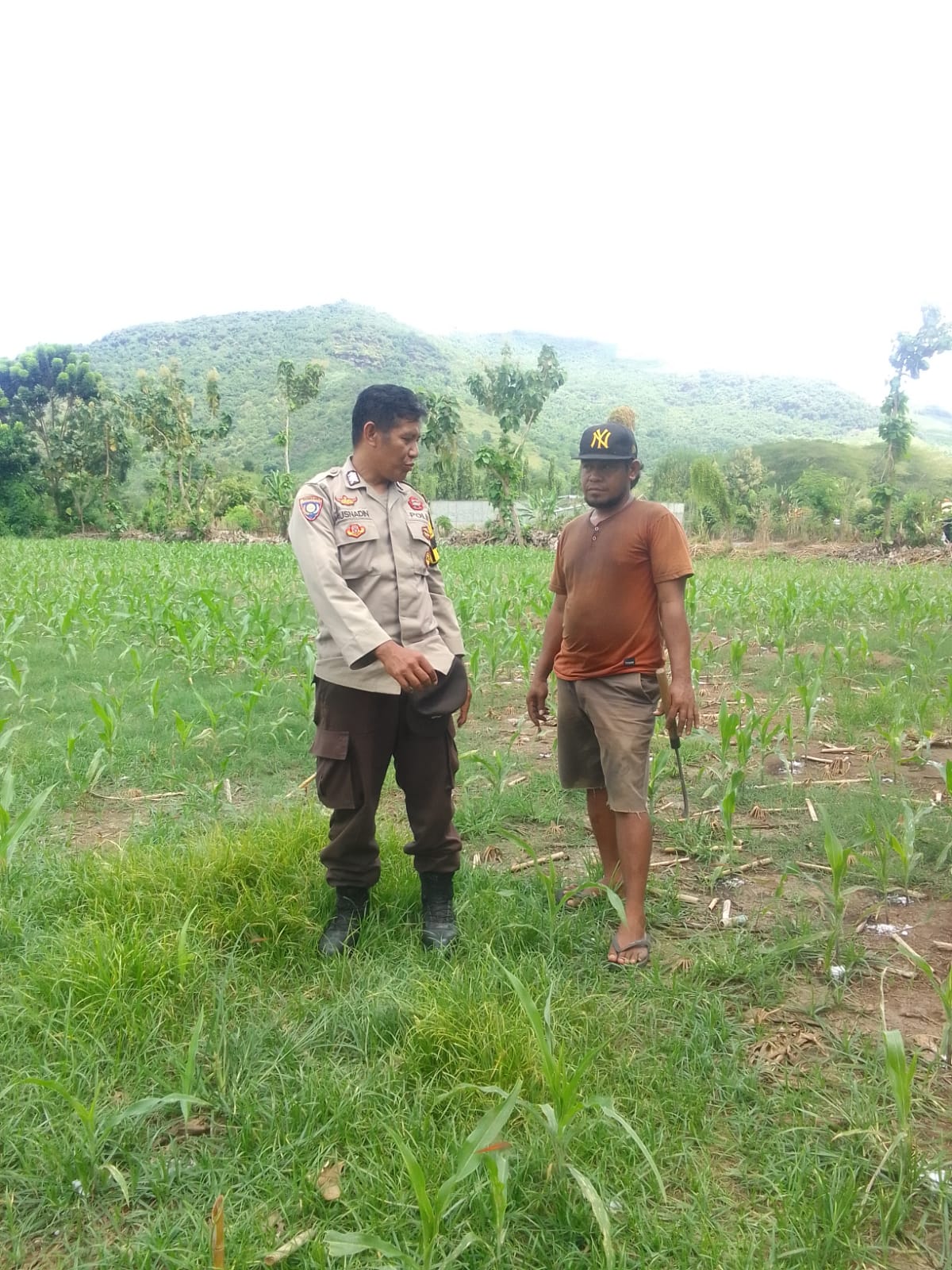 Guna mendukung Program Ketahanan Pangan Nasional Menuju Indonesia Emas 2045, Bhabinkamtibmas Desa Bara, Bripka Rusnadin, melaksanakan pemantauan pengolahan lahan pertanian milik warga binaan, Bapak Arqam Hardiaman, pada Sabtu (19/4/2025) pukul 11.30 Wita di Dusun Muncul Baru, Desa Bara, Kecamatan Woja, Kabupaten Dompu.